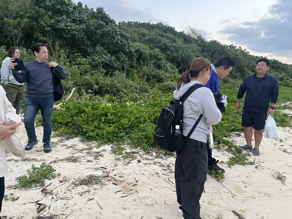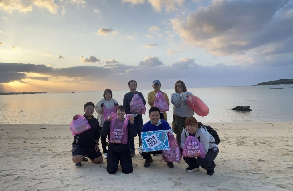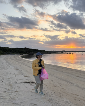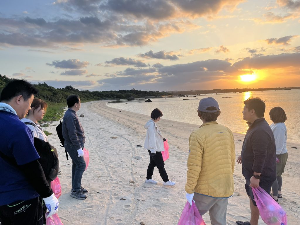清々しい海風と、水平線から昇る美しい日の出をバックに、ビーチクリーン活動は無事終了しました。今回は約15分間の活動で、回収対象をペットボトルに限定して行いましたが、驚くほど沢山のペットボトルを回収しました。