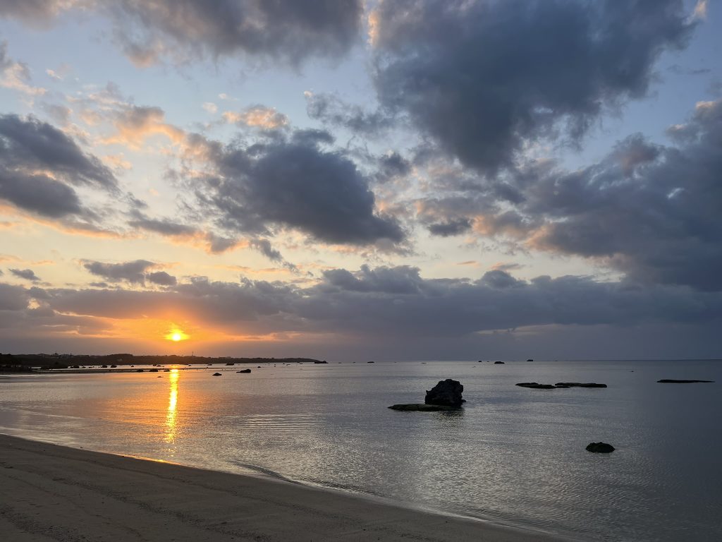 日の出前の6時半過ぎ、気温18℃の海辺は海風が心地よくて最高に気持ちいい状況でした!