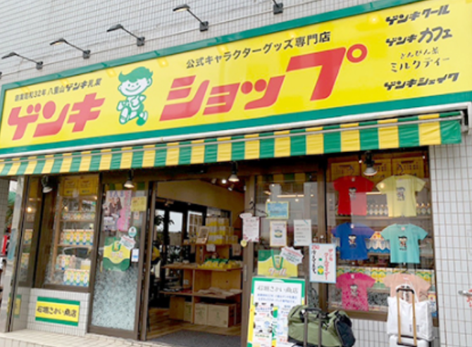 ゲンキショップ:石垣島発のローカルショップ。個性的なお土産を探すならココ! 地元牛乳を使った名物「ゲンキシェイク」やマスコット「ゲンキくん」グッズも人気。