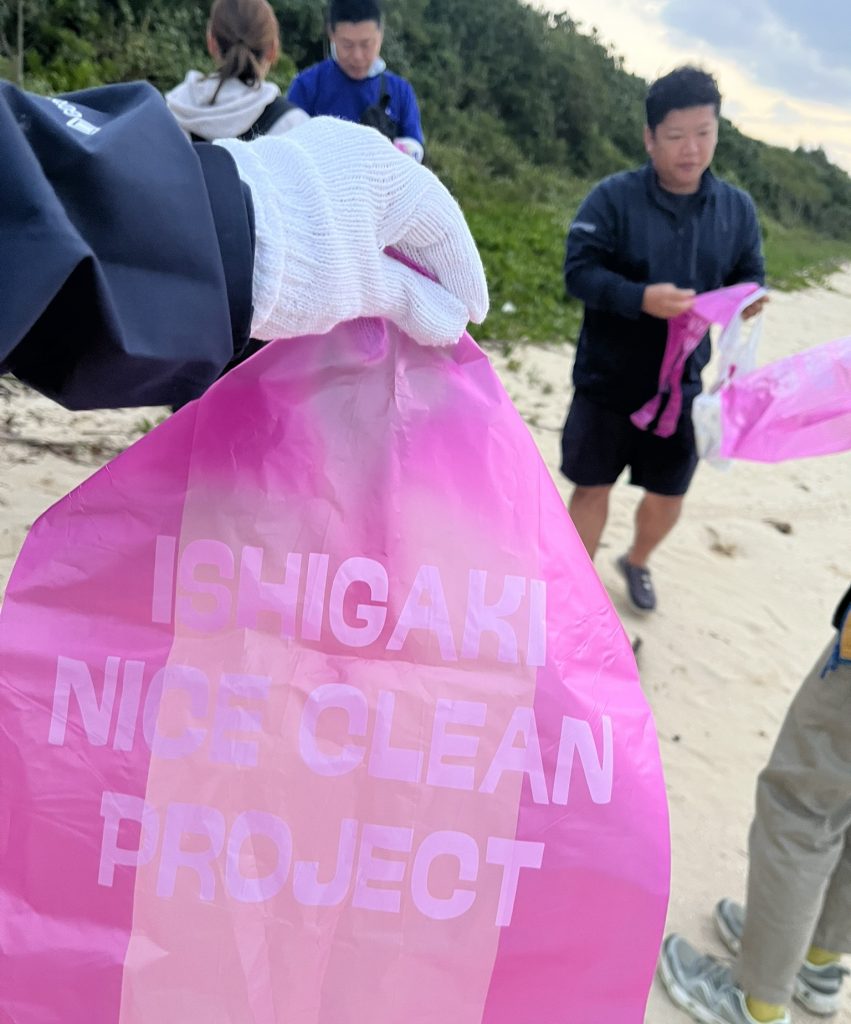 松原さんが事前に石垣市にビーチクリーンの申請をして下さり、専用の回収袋が支給されていました。ピンク色で気分もあがります。