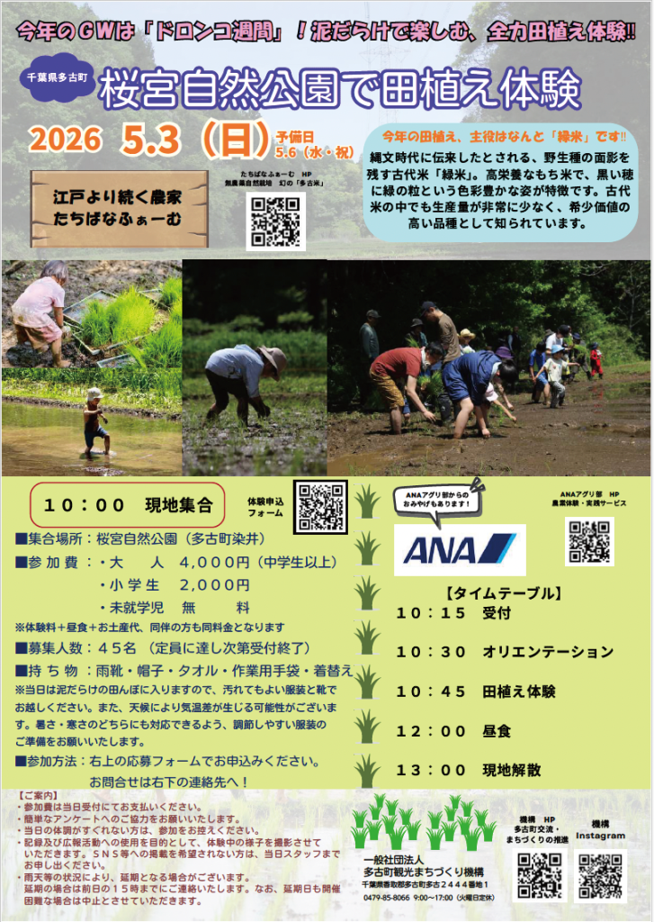 ANAアグリ部は、千葉県多古町にある「たちばなふぁーむ」さんで開催された、お米の種まき体験に参加しました。